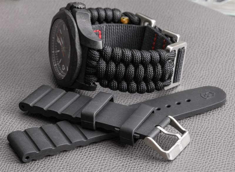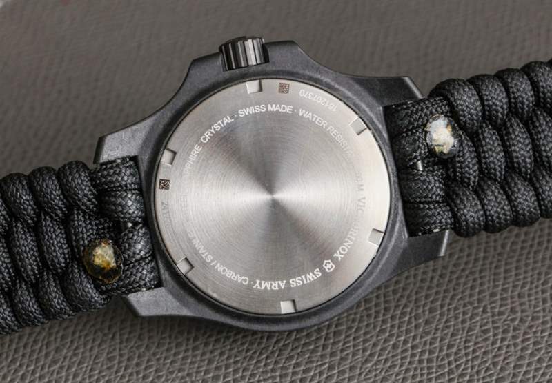 Victorinox Swiss Army INOX Carbon 內(nèi)部裝有瑞士石英 Ronda 機(jī)芯。它提供時(shí)間和日期,適用于大多數(shù)情況。同樣,純粹主義者喜歡在手表中使用機(jī)械機(jī)芯,但為此,維氏瑞士軍有其他項(xiàng)目。實(shí)際上,機(jī)械機(jī)芯無(wú)法承受 INOX 生存所需的耐用性測(cè)試,因此在這種情況下,石英機(jī)芯實(shí)際上更適合手表的既定用途。