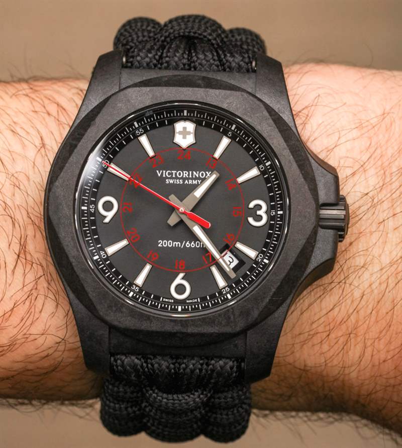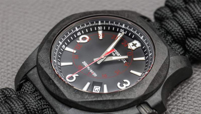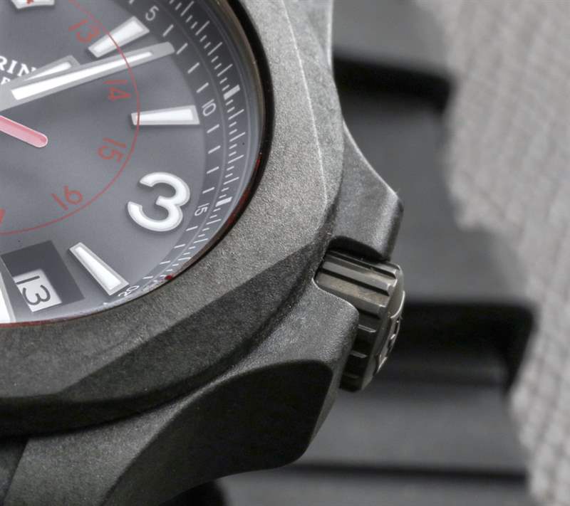 Victorinox Swiss Army INOX Carbon 推出首款黑色 INOX 表殼,并為該品牌使用了輕質(zhì)材料。我很確定 Victorinox Swiss Army INOX Carbon 的開(kāi)發(fā)始于該品牌希望擁有一款黑色版本的手表。他們決定像其他品牌(尤其是高端品牌)一樣流行,并使用高科技碳材料,而不是簡(jiǎn)單地做一個(gè)涂層金屬外殼。