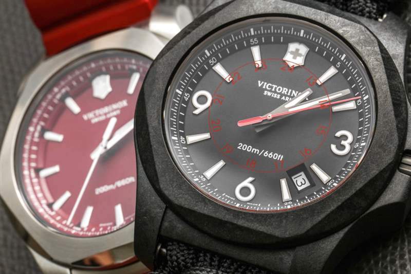 最初的 Victorinox Swiss Army INOX 采用鋼制,隨后推出了INOX Professional Diver、INOX Titanium以及現(xiàn)在的 INOX Carbon。正如我過(guò)去所說(shuō),因?yàn)?em>inox在法語(yǔ)中的意思是不銹鋼(inoxydable),所以對(duì)于像我這樣癡迷于詞義的人來(lái)說(shuō),有 INOX 手表不是鋼制的有點(diǎn)奇怪。雖然我可以原諒它,因?yàn)槲艺娴恼J(rèn)為這個(gè)系列足夠好,不僅僅是表面上的表盤(pán)變化。回想一下,在2015 年,我們還贈(zèng)送了一些特別的 Victorinox Swiss Army INOX 紅色手表背面帶有 aBlogtoWatch 標(biāo)志——作為對(duì)本網(wǎng)站評(píng)論最多的人的獎(jiǎng)勵(lì),以慶祝獲得 100,000 條評(píng)論。在撰寫(xiě)本文時(shí),我們的評(píng)論接近 200,000 條。