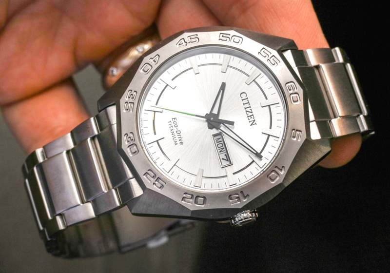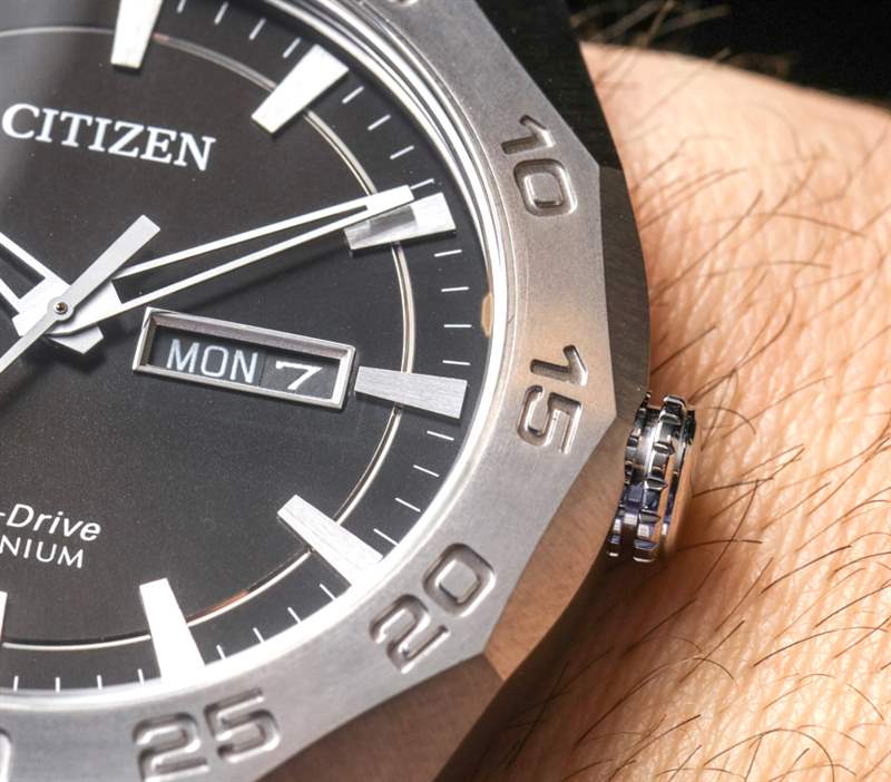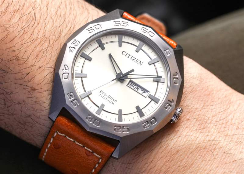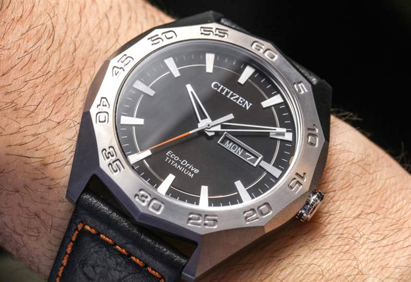 戴在手腕上的 Citizen Eco-Drive Super Titanium AW0060(公認(rèn)的通用名稱,不會賦予手表個性)寬 44 毫米,非常薄,佩戴也非常舒適。表殼防水深度達(dá) 100 米,并覆有礦物(相對于藍(lán)寶石)水晶。安裝藍(lán)寶石水晶會花費(fèi)更多的錢,鑒于這個價格,我認(rèn)為礦物水晶是可以接受的。