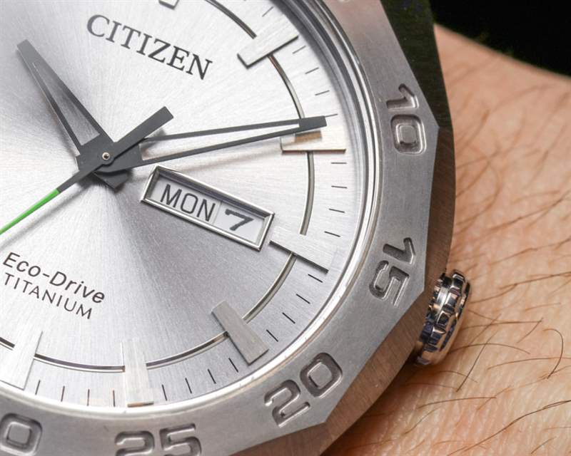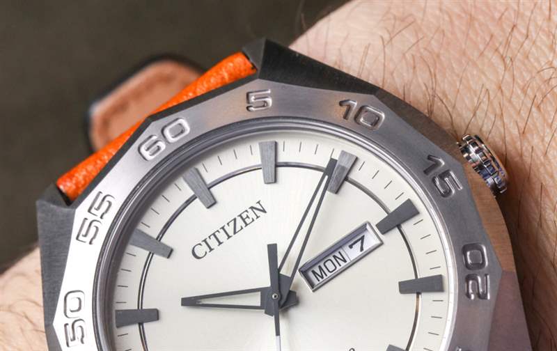 在我看來,表盤設(shè)計(jì)是對實(shí)用性經(jīng)典主題的現(xiàn)代更新。相對干凈,我們有一些不錯的紋理選擇,例如拉絲金屬時標(biāo)和整體良好的細(xì)節(jié)。指針與鏤空無關(guān),但在 AW0060-03E 型號上,您可以很好地讀取時間。不幸的是,這些手表都沒有發(fā)光體——考慮到西鐵城想要搭配的特殊紋理和顏色,這真是一個奇怪的設(shè)計(jì)選擇。話雖如此,至少在經(jīng)過審查的模型上,高水平的表盤對比度在弱光條件下具有良好的易讀性。